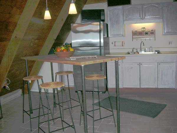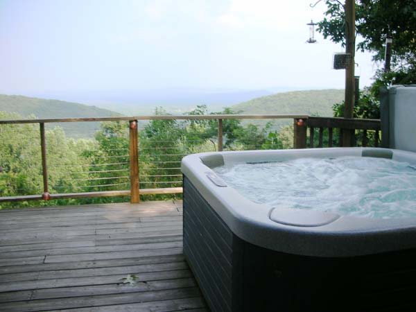 This two-bedroom, one bath A-frame chalet in Sleepy Hollow has modern touches and views that will take your breath away. A two-hour door-to-door drive from Washington, D.C., or Baltimore, the updated cabin has a large deck with a hot tub to take in the nearly panoramic views in luxurious comfort. New hardwood and tile floors are installed throughout, and the unit contains a remodeled slate tile rain-head shower bath.